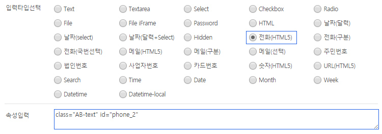 전화번호 입력상자의 속성을 입력합니다.