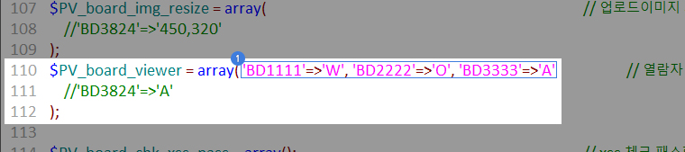 1) =>를 기준으로 왼쪽에는 게시판의 DB Table명을 입력하세요. ▶ 매뉴얼의 '③DB Table명' 확인