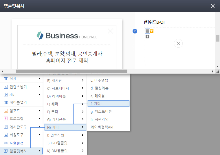 템플릿복사 > H) 기타 > f, 기타 > [키워드LPO] 템플릿의 D버튼을 클릭하여 복사합니다.