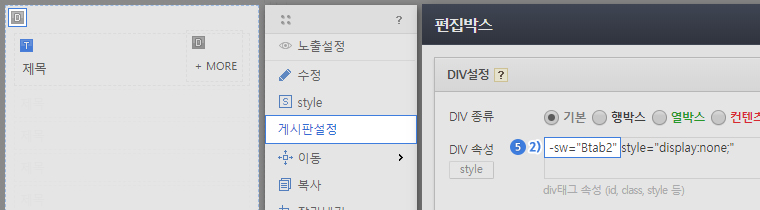 예시) 세번째 DIV면 -sw="Btab3", 네번째 DIV면 -sw="Btab4"