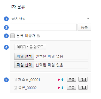 분류명(또는 수정버튼)을 클릭하면 해당분류의 하위분류용 입력상자가 열립니다.