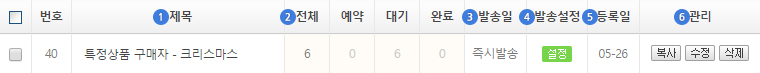 1) 설정 : 메일만 작성하고, 발송설정은 하지 않은 상태입니다. 설정버튼을 클릭하여 발송설정을 완료하세요.