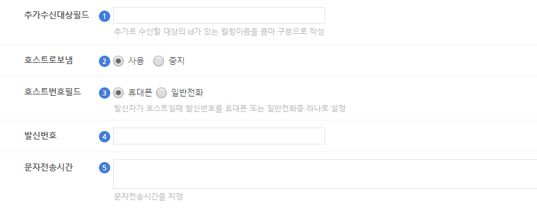 1) 사용 : 보내는 번호를 무조건 대표호스트의 정보로 설정합니다.