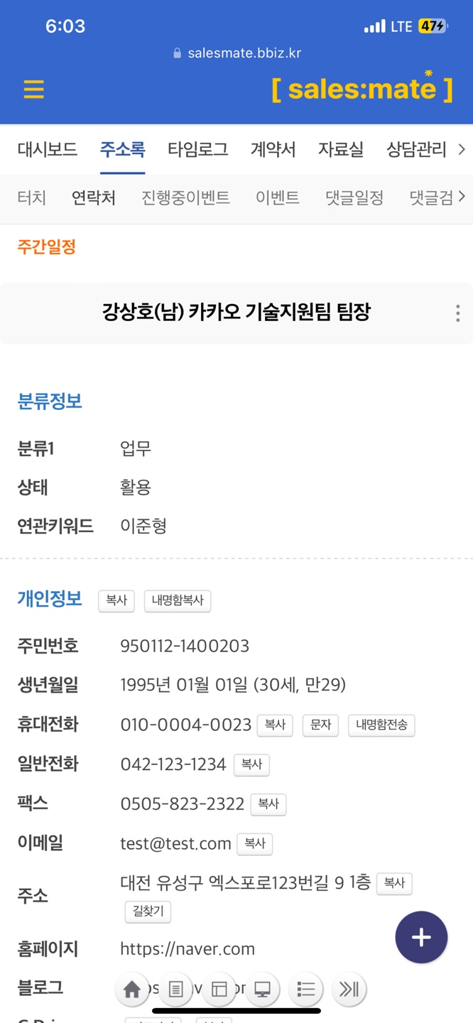 다양한 정보들을 입력 후 관리할 수 있습니다.