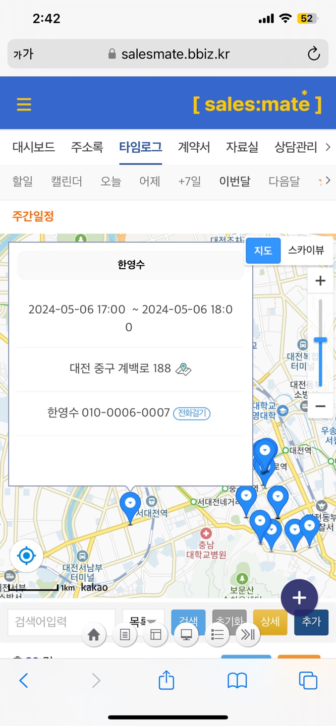 오늘 하루 출장 위치를 지도에서 한눈에 파악