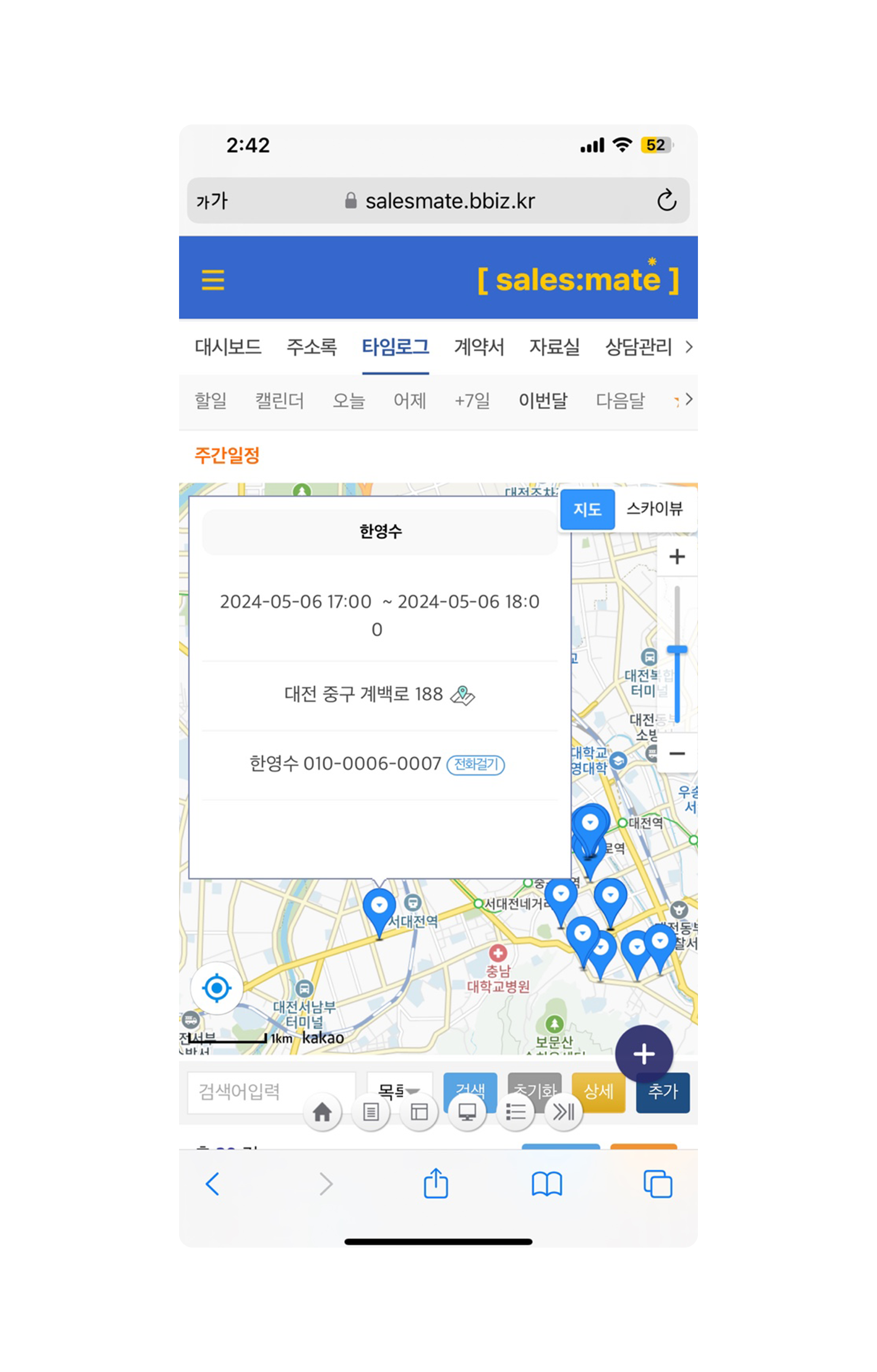 오늘 하루 출장 위치를 지도에서 한눈에 파악
