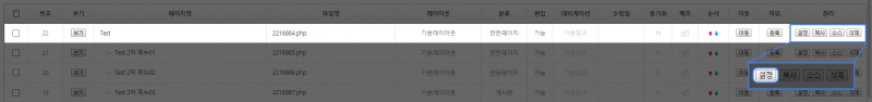 Test라는 1차 메뉴(페이지)에 세 개의 하위 페이지가 있습니다.