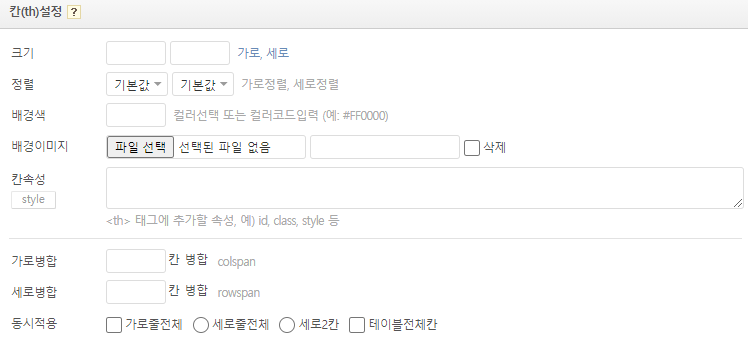(헤드칸(th)을 지정하지 않은 칸은 기본 칸(td) 입니다.)