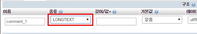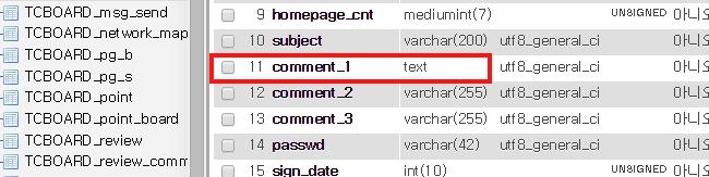 때문임으로 필요 할 경우 DB(PMA)접속하여 해당 게시판의 comment_1 필드의 크기(저장용량)를 수정 할 수 있습니다.
