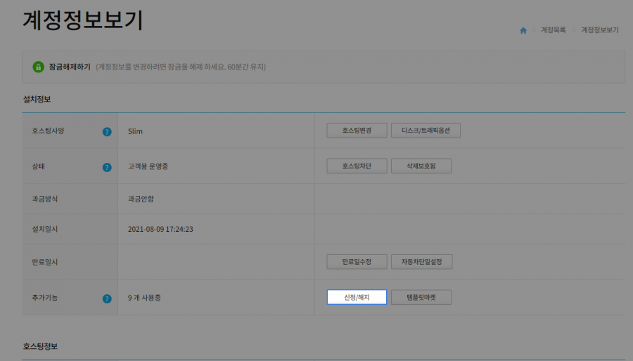 2. 호스팅사양변경